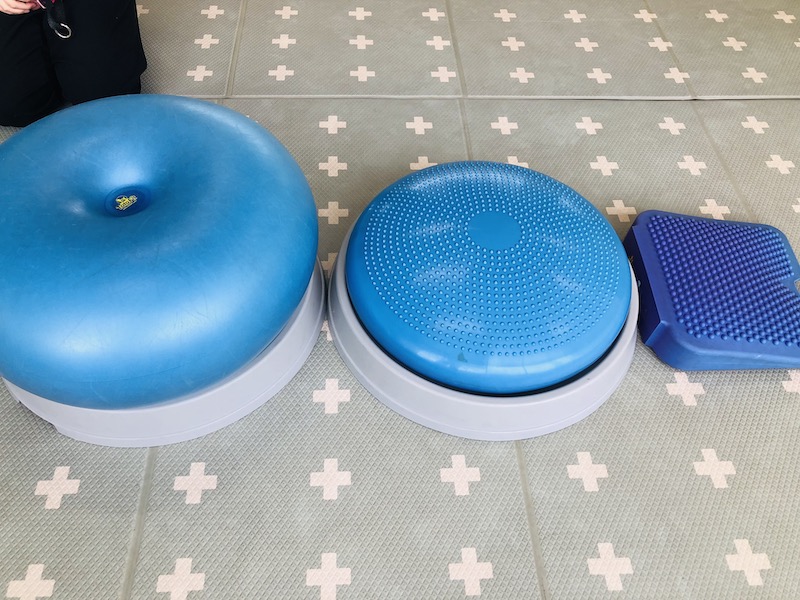 これも楽勝なので、次はさらにハードルを上げて、バランス器具を3つ並べてチャレンジ!