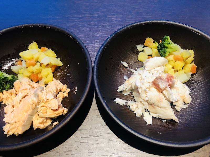 わんこにはサーモン焼き(左)とハーブチキンのささみ(右)をオーダー。あっという間に完食です★