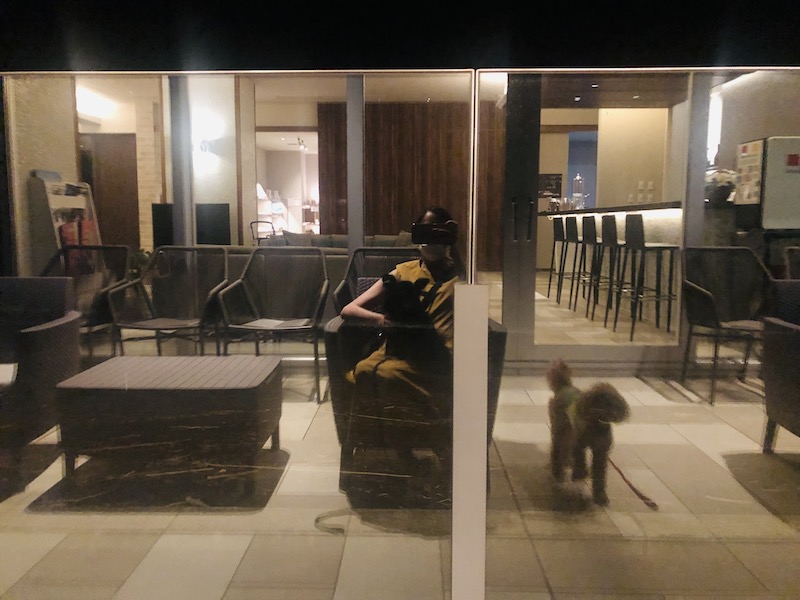 ガラスが綺麗に反射していたのでパシャリ。屋内にも1組お誕生日わんこがいました。