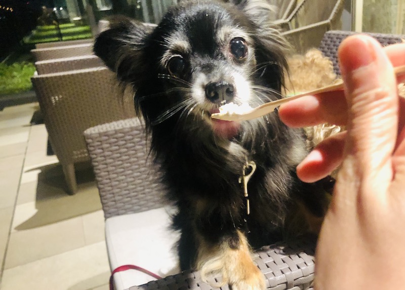 犬たちにもお刺身やお肉をちょっとずつシェアしています。