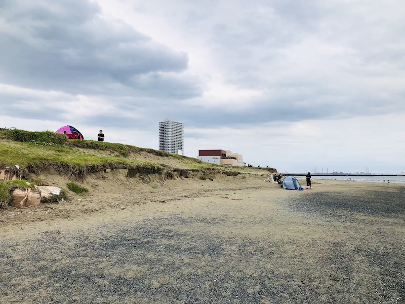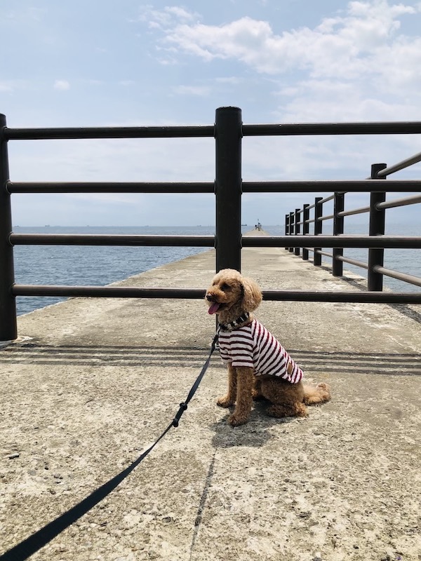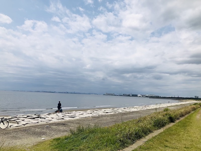 人工浜はこんな感じです。遊泳禁止のため人は少なめで犬とのお散歩に最適ですね。